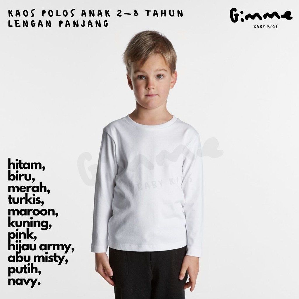 BISA COD Baju Kaos Polos Anak Lengan Panjang 2 8 Tahun . Sumber Gambar : shopee.co.id